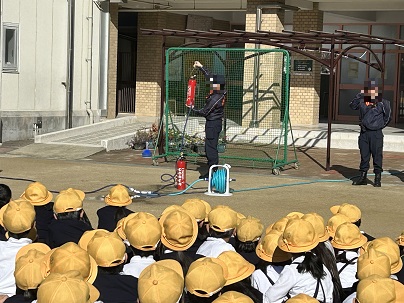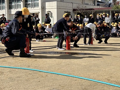 避難訓練と合わせて、城東消防署から来校いただき、消火器の取り扱いや煙体験も実施しました。