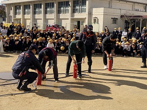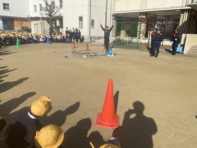 11月29日2時間目に給食室からの出火を想定した火災の避難訓練を実施しました。