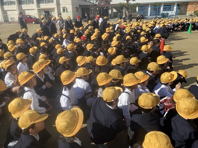 事前に東中浜小学校生活指導部で作成した学習動画を視聴し、実際に訓練に取り組みました。その中でも特に「お・は・し・も」の合言葉を東中浜小学校では大切にしています。