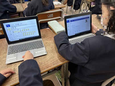 デジタルドリル支援員にお手伝いいただき、学習の確かめをおこないました。