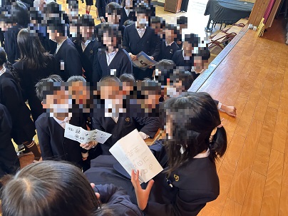各班の先頭に並ぶ6年生、みんなと活動するのも残り少なくなってきました。