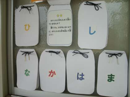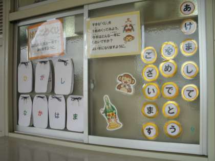 保健室前の掲示板。「けんこうくじ」がありました。新年のおみくじ。今年も健康な1年でありますように」というのがすてきです。