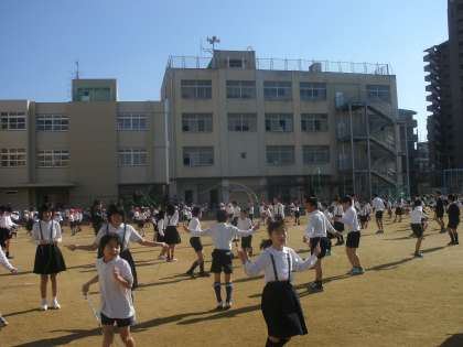 なわとび週間は、今日で4日目。ずっと楽しくとんでいますが、大なわをとんでいる学級もあって、もりあがっています。