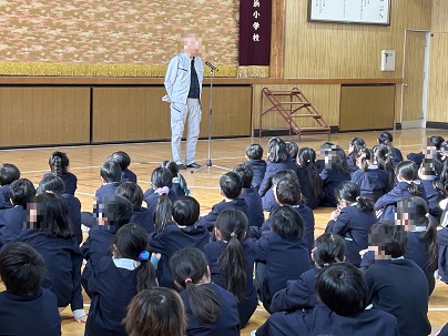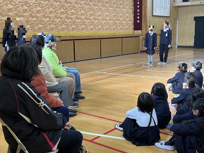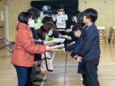 登下校時、地域の方々やPTAで協力いただき、子どもたちの登下校が安全にできるように、見守りをおこなっていただいています。今年度も1年、暑い日も寒い日も、子どもたちを見守っていただきました。全校児童で直接お礼を伝え、感謝のお手紙を渡しました。