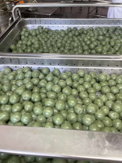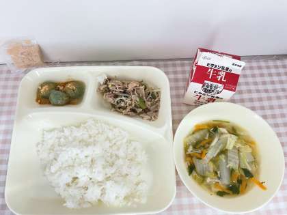 給食では蒸したよもぎだんごにみつをからませて、食べるときにきな粉をまぶして食べました♪