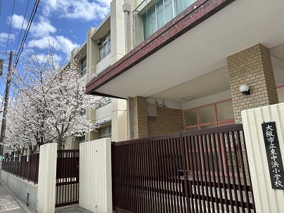 写真のように学校の桜がきれいに咲き始めています。開花した桜の花々が新1年生の子どもたちの入学をお祝いしてくれています。