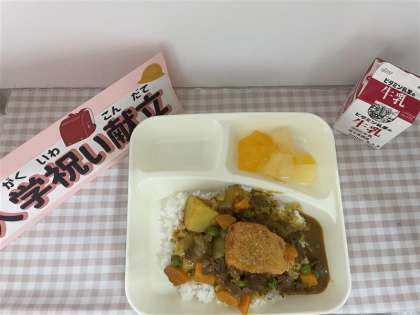 今日の給食は、1年生の入学をお祝いする「入学祝い献立」でした!