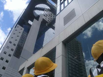 台風接近のため延期されていた社会見学で、市内めぐりをしました。写真上から、天王寺駅、大阪駅、梅田スカイビルです。
