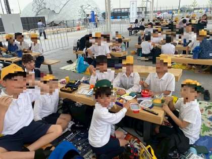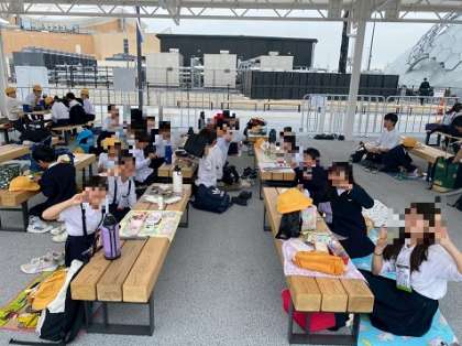 歩き疲れた様子も一部見られましたが、お弁当を見たとたんに子どもたちの笑顔は復活!