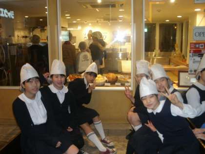 右:パン屋さんで。
