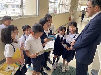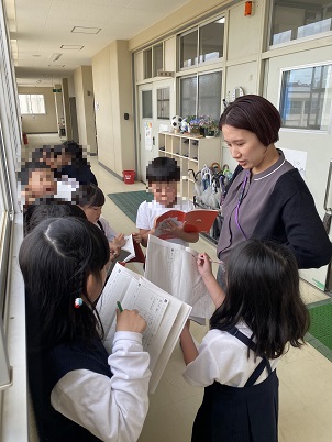 2年生の国語科の授業「はたらく人に話を聞こう」で学校の先生にインタビューをする光景があちらこちらで見られました。