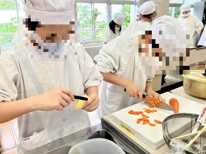 野菜を洗ったり、切ったり、ゆでたり、役割分担をきっちりしてどの子も実習に取り組んでいたのが印象的でした。