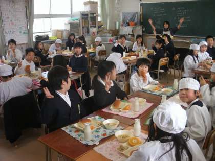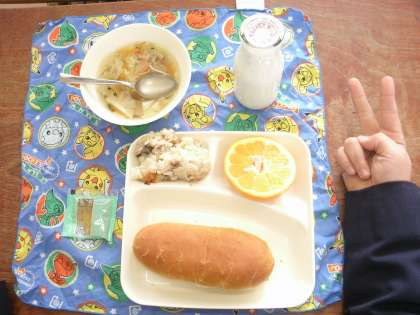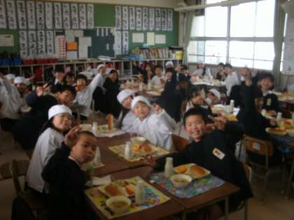 3年1組ではとてもマナーの良い食事風景をみることができましたでした。配膳のときも静かに待っているのがすてきです。こんだては「押し麦のゲラタン」「スープ」「いよかん」。