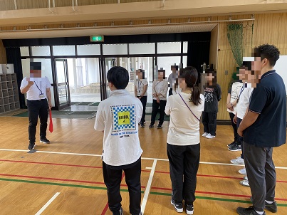 研修会の最後は、ドッヂボールの色々なアイディアとして「王様ドッヂボール」を先生たちで行いました。若手の先生たちの交流も深まりました。