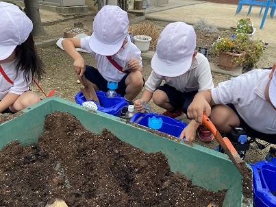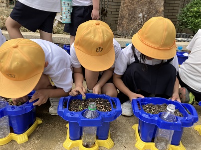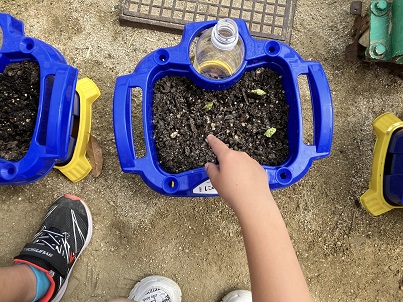 タイミングもよかったのか、あさイチの水やりとは植木鉢の様子が変化していたようで、「えっ、朝はなんもなかったのに、今生えてるやん!!」と歓喜。