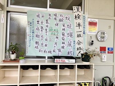 校長室の前にも、漢字検定準1級の問題があります。6年生なら、何とか解けるでしょうか。