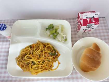 「カレースパゲッティ」は、豚ひき肉を主材に、ベーコンで旨みを増し、カレールウの素などで味付けしたスパゲッティです。