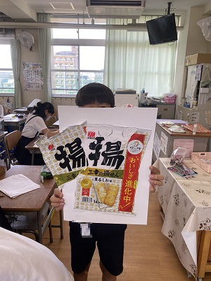 6年生の図工ではお菓子のパッケージ袋や箱を模して絵の具で表現していました。