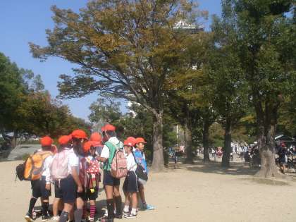 オリエンテーリングは、1年生から6年生の児童がたてわりでつくっている「にこにこ班」で実施されました。6年生、5年生がリーダーとなってみんなをまとめていました。
