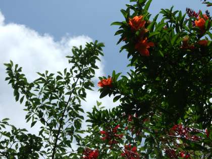 青い空、白い雲…季節はいよいよ夏を迎えます。校庭の木々、花や野菜は一足先に夏模様になりました。先日、1年生が種をまいたアサガオも芽をだし葉も大きくなりました。なすびも小さな実をつけています。
