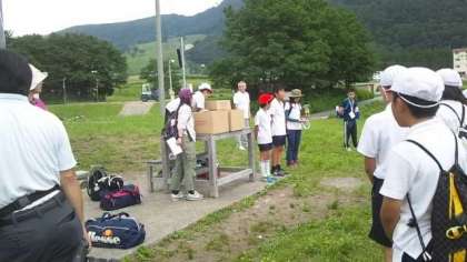 天候に恵まれ、欠席者もなく全員元気に林間に出発し、11時頃、はち高原に到着しました。到着後、最初のプログラムの開舎式を行いました。