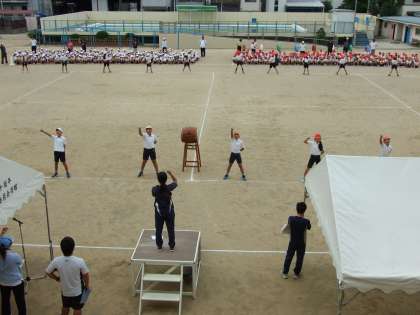 応援団の児童は9月の始めから練習に取り組みました。今日は1回限りの全体練習です。応援団長を中心にして元気できびきびした様子を見せてくれました。今の流行を取り入れた応援もあります。運動会当日、応援団の児童に大きな声援をお願いします。