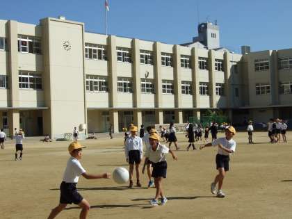 今日は朝から雲ひとつない素晴らしい快晴です。気温も暑くもなく寒くもなく、運動をするには最適です。心地よい風も吹いています。このような中、子どもたちは運動場で元気に遊んでいます。高学年児童はボール遊び、低学年児童はジャングルジムや雲梯などの遊具で友だちと楽しい時間を過ごしています。チャイムが鳴ると気持ちを切り替えて学習に取り組んでいます。
