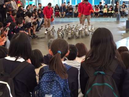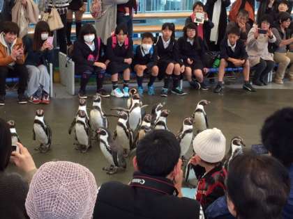 鳥羽水族館で早くも買い物をしたりペンギンウオークを見たり楽しんでいます!