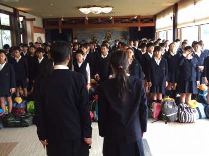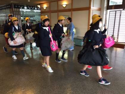 一泊二日、お世話になったパークホテルみち潮さんともお別れです。女将さんからはいつまでも思い出を大切にしてくださいとのお話がありました。バスに乗って志摩スペイン村にGO!