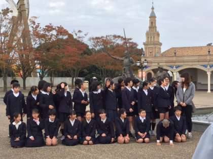 なんと志摩スペイン村の開園前に到着!ここで集合写真をパチリ