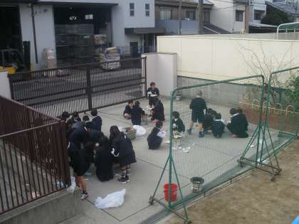 昔の道具を知ろう、という学習で七輪をつかって炭に火をおこし、おもちを焼きました。なかなか火をおこせなくて手間どったグループがありましたが、なんとかどの子もおもちを食べることができました。「おこげがにがーい」という子もいましたけれど、楽しい学習になりました。