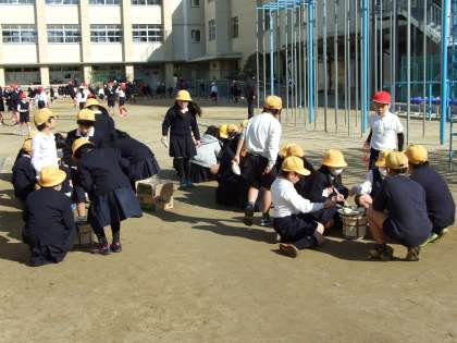 3年生児童がもち焼き体験に挑戦しました。3年生は社会の授業の中で昔の人の暮らしについて学習しています。七輪の中に新聞紙、小枝、炭を入れてマッチをつかって火を着け、炭をおこしていきます。子どもたちにとってマッチを使って新聞紙に火をつけることや何度もうちわを仰いで火を大きくすることは初めての経験です。やっと炭に火が付いたら、ようやくもち焼きです。子どもたちは昔の人々の苦労を体験を通して学ぶことができました。もち焼き体験は今日、明日、明後日と3日にわけて行います。