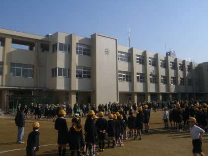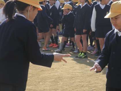 6年生を中心にしたじゃんけんゲームです。6年生と1から5年生で対戦しました。