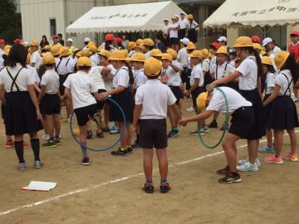 今日は水曜日、児童集会のある日です。フラフープを使って、ニコニコ班で輪くぐりをします。ニコニコ班の活動ではいつも6年の児童が活躍しています。来週の集会も楽しみです。