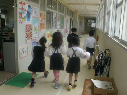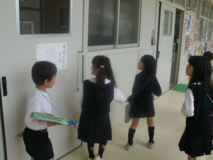 2年生が1年生をやさしく、そしてたのもしく学校の中を案内しました。2年生もきっと去年の自分を思い出すのでしょうね。