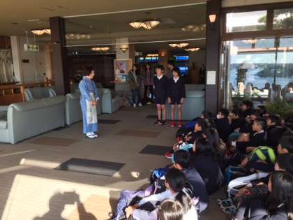 一泊二日お世話になったみち潮さんともお別れです。大女将さんからは私たちの仕事に喜んで頂き、ありがとうございますとの言葉をもらいました。これも子どもの頑張った姿があればこそです。