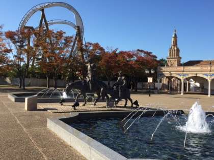 パルケエスパーニャに到着しました!開園は9時半、しばらく待機です。記念写真を撮り、ピレネーを見て、期待は高まるばかりです。それにしても雲一つない快晴です!
