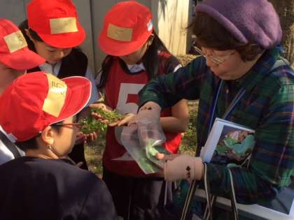 4年生の子どもたちは自然体験教室に取り組みました。シニア自然大学の皆さんを講師としてお迎えし、東中浜小学校にある樹木や草花について学習しました。普段は気にはとめない雑草にもいろいろな不思議があることを知ることができました。