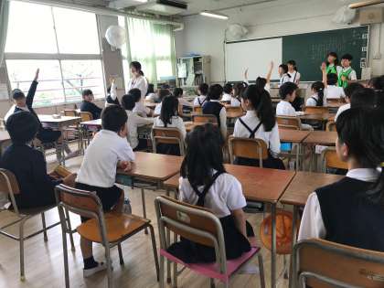 1〜6年生までをたてわりをして、にこにこ班を編成しました。1年生は、初めてなので、6年生の班長さんが誘導して教室まで、連れて行ってくれました。今日の活動は、自己紹介・わくわくふれあい集会でのお店決めをしました。