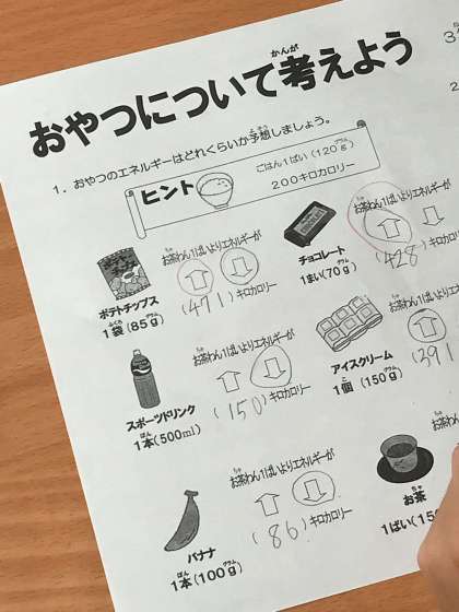 先週、金曜日、栄養教諭の先生が来てくださり、おやつについて話ししてくださいました。