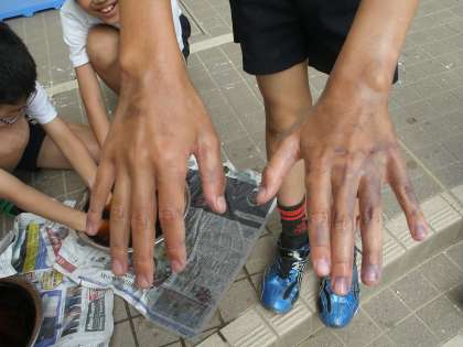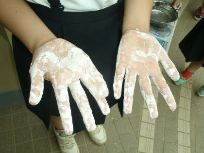 みんながきちんと手洗いができているかを保健委員会で調べました。しっかり洗って、清潔な手に、というのを全校にアピールします。