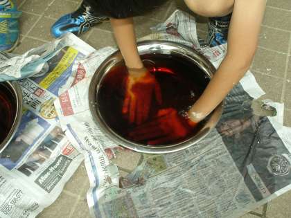 3 下:きれいに洗えていないと、むらさきいろになります。