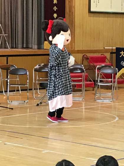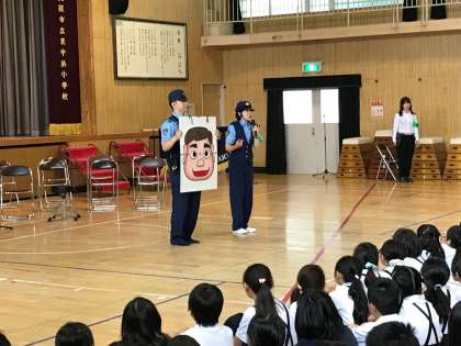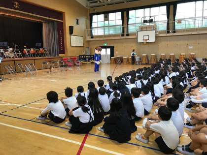 昨日、全児童対象に、城東警察署が防犯教室をしてくださいました。誘拐されないように、着ぐるみを使ってわかりやすく危険回避の方法を教えてくださいました。