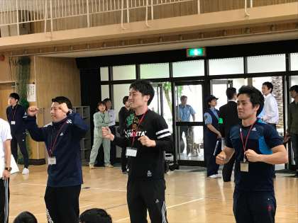 城東警察署の皆さんが防犯ダンスを披露してくださいました。本校の先生たちも…