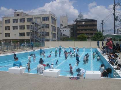 朝早くから準備した魚つかみ。プールでは、親子の歓声が午後の強い日差しの中で楽しく明るく響いていました。「60匹つかまえたで〜〜〜」「23匹つかまえたで〜〜〜」