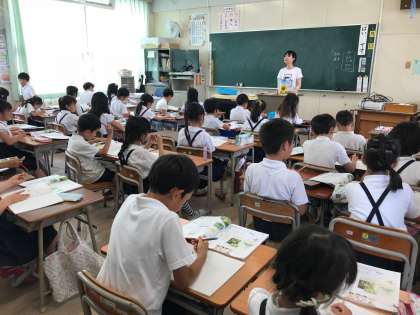 チョウの学習をしました。授業の終わりに、お隣の担任の先生から連絡があり、蝶々の誕生を見に行きました。