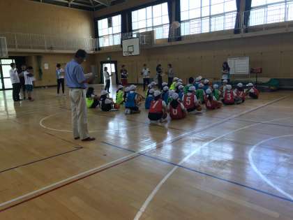 指導講評してくださる校長先生をお招きして、今年度初めての研究授業を行ないました。子どもたちは、各チームごとにチーム名を決め、戦術を話し合ったり、振り返りをして、レベルの高いゲームでした。
