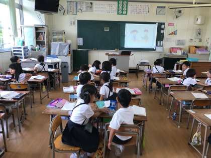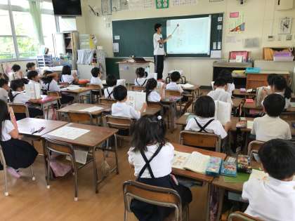 相手にある内容を伝える学習で、ペアになって昨日の晩ご飯を伝えあいました。