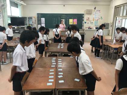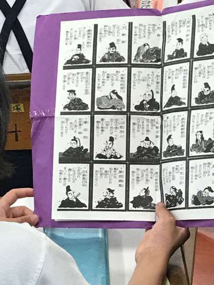 百人一首に挑戦!上の句を読むだけで、「はい」という子どもたちがいるのに驚きました。