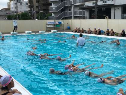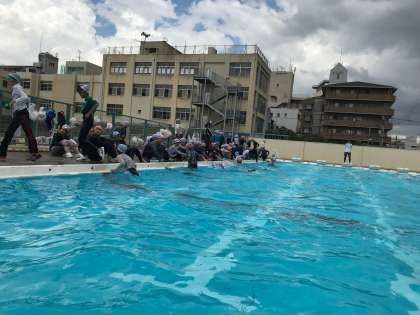 高学年の着衣水泳は、普段きている服や靴を履いて行ないました。